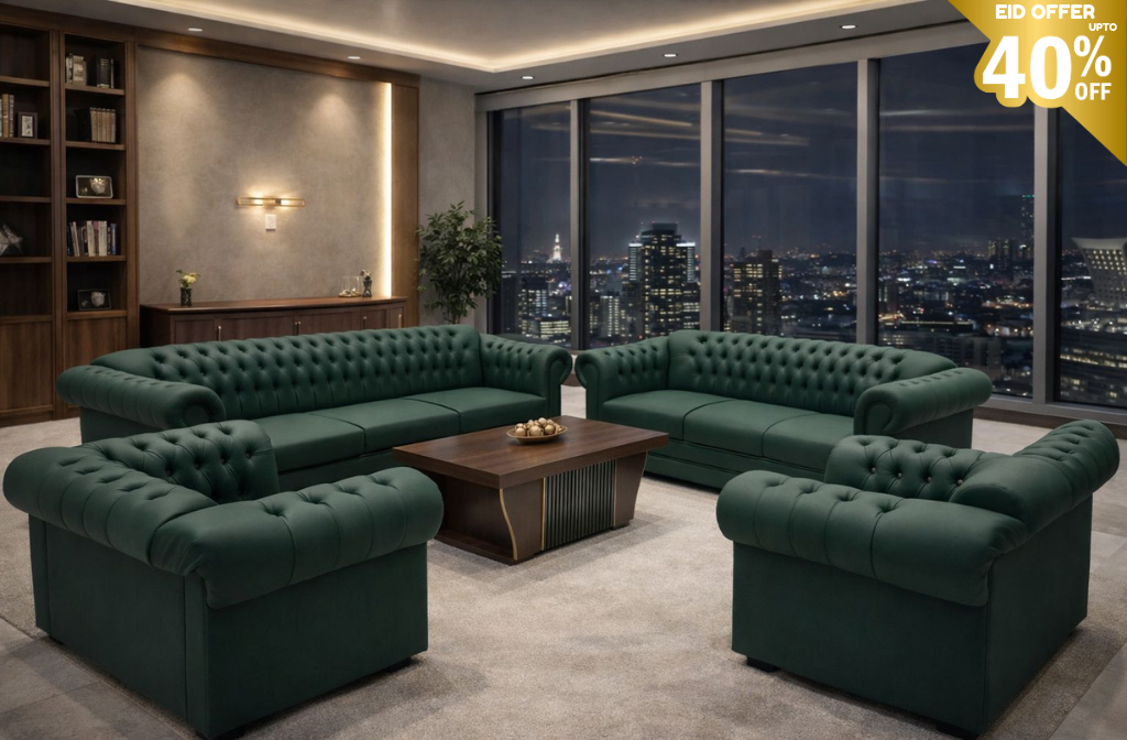 Elite Luxury Executive Office Sofa Set for 5 Person and 7 Person – Premium Chesterfield Design with Center Table | Modern Corporate Lounge Furniture- Free installation and Delivery