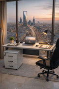 [MOBILE VERSATILITY] The included filing cabinet features smooth-gliding casters for easy repositioning, ensuring your essentials are always within reach regardless of your office layout.