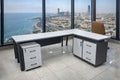 Executive L-Shaped Office Desk with 3 Drawers – Includes FREE Professional Assembly & Free Shipping – 60” Modern Corner Workstation, White & Grey