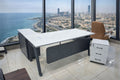 [PREMIUM DURABILITY & STYLE] Crafted from high-density eco-friendly wood with a scratch-resistant laminate finish. The elegant white top and charcoal grey accents provide a professional, modern look that elevates any office decor.