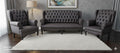 3-Piece Dark Gray Faux Leather Chesterfield Sofa Set - Tufted 3-Seater Couch + 2 Wingback Accent Chairs for Living Room) 5 Seater Sofa Set