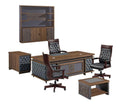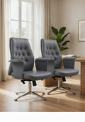 - High-Quality Craftsmanship — Solid engineered wood construction with durable grey accents, tufted leather upholstery, and precision-cut geometric patterns — built to impress in CEO offices, home offices & corporate spaces