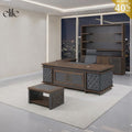 Elite Executive Office Desk Set – with Chairs.Luxury Wooden CEO Desk with Grey Tufted Leather, Islamic Geometric Panels, Side Table, Wall Unit – Eid Special Up to 40% Off- Free installation and Delivery