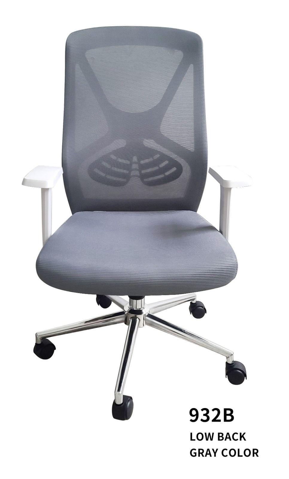 The 932B Low Back Office Chair brings modern simplicity and ergonomic comfort together in one stylish design. With a breathable gray mesh backrest and seat, this chair ensures proper airflow and a cool sitting experience. The white armrests and chrome-plated base add a contemporary touch, making it ideal for creative offices, home workspaces, or conference rooms.