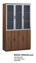 BK028-3D Glass Door Bookcase – Golden & Gray Finish