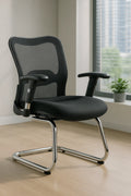 Upgrade your workspace or reception area with the ErgoMesh Visitor Chair, designed for modern comfort and style. This chair features a breathable mesh backrest that promotes airflow and ergonomic support, ensuring your guests stay comfortable during long meetings or waiting periods. The contoured fabric seat provides plush comfort, while the fixed chrome cantilever base offers stability and a professional appearance. Adjustable armrests add a customizable touch, making it a perfect addition to any office environment.