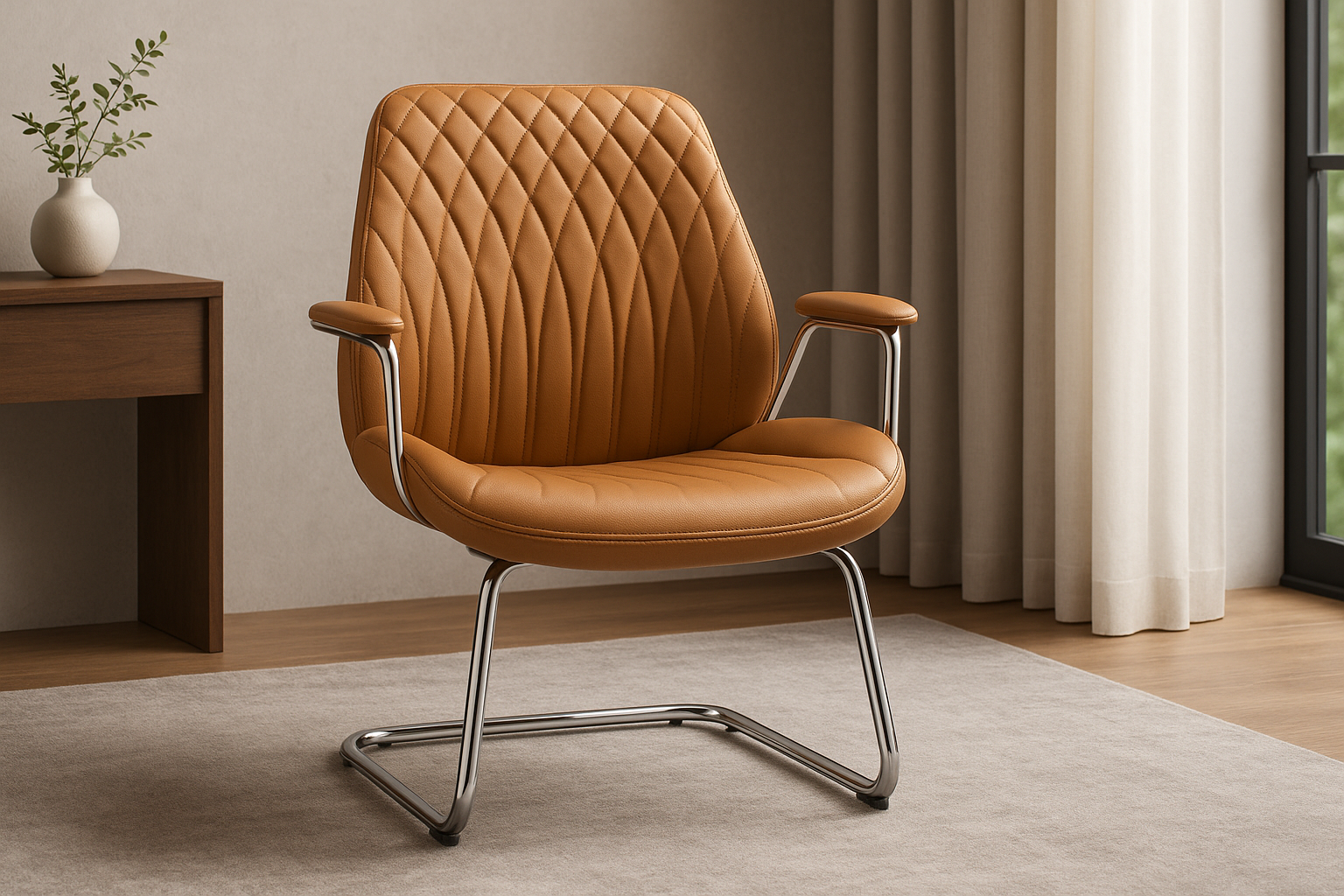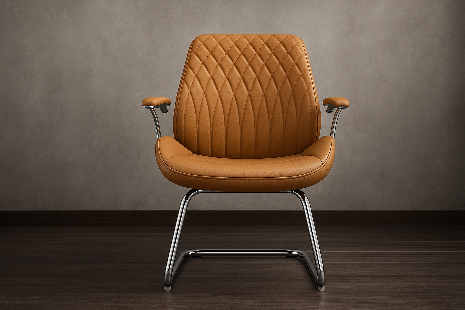 Enhance your workspace aesthetics with our modern and ergonomic 4009C-1 Visitor Chair in a warm beige tone. Designed with a premium faux leather finish and sleek stitching pattern, this chair delivers style without compromising on comfort. Its chrome-plated legs provide stability and a professional look—ideal for offices, reception areas, and conference rooms.