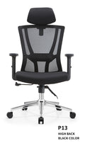 The P13 High Back Office Chair is built for modern workspaces that demand comfort and style. Featuring a breathable mesh backrest, wide headrest, and contoured support zones, it’s designed to keep you cool and comfortable during long work sessions. The cushioned seat, adjustable armrests, and chrome-plated base with smooth-rolling wheels offer both support and functionality in one sleek design.