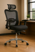The Premium High Back Ergonomic Office Chair is engineered for professionals who demand comfort and style. Featuring a breathable mesh backrest with dual lumbar zones, a generously padded seat, and a wide contoured headrest, this chair offers advanced support for long hours of work. The adjustable 3D armrests, multi-tilt mechanism, and a heavy-duty chrome base deliver both versatility and durability. A sleek, modern black finish makes it perfect for executive, home, or workstation setups.