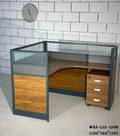 This unit is perfect for open-plan offices that require modular division without sacrificing visual openness or style. Subtle lighting and clean architecture complete the scene for a calming and efficient workspace.